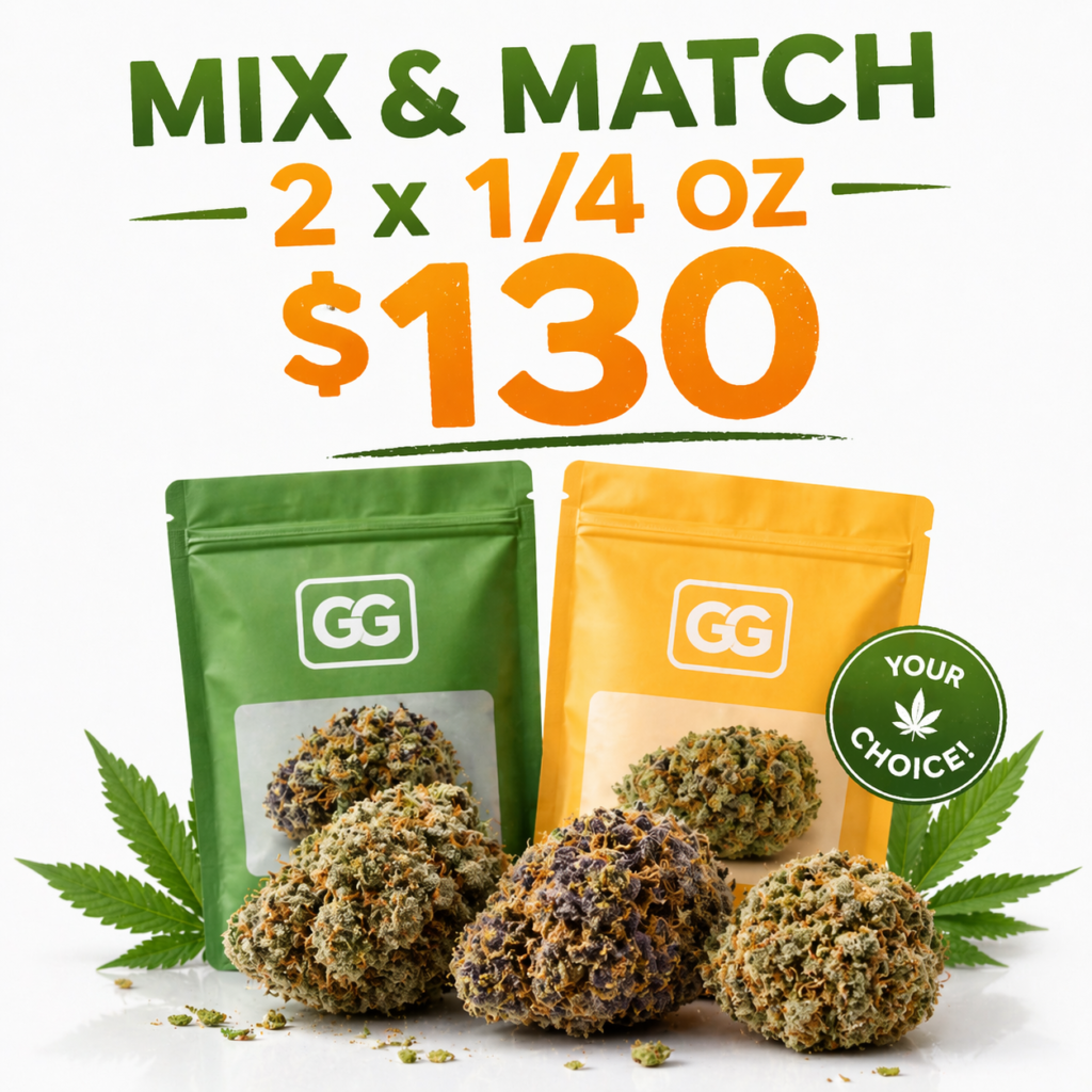 Free 2 packs pre-roll or 1 Oz promo strain or 3 * 1200mg gummies or 3g of Shatter or 3g live resin with Purchase of $250+