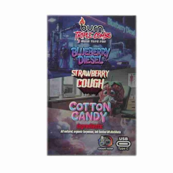 Burn Triple Combo – Blueberry Diesel + Strawberry Cough + Cotton Candy (3 Gram)