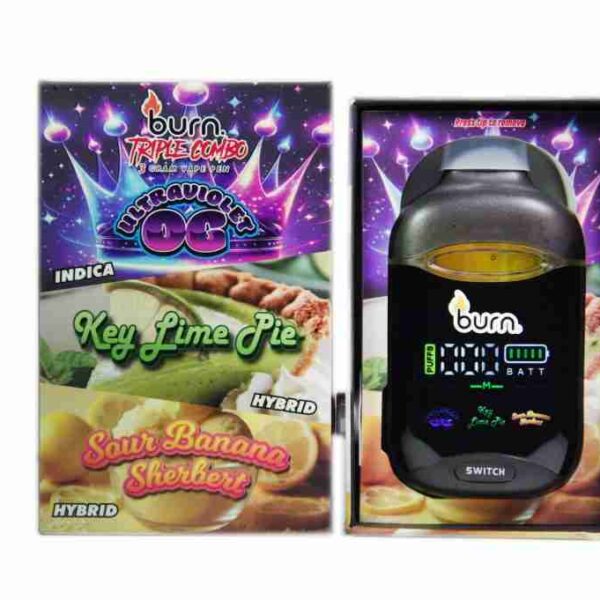 Burn Triple Combo – Ultra Violet OG + Key Lime Pie + Sour Banana Sherbert (3 Gram)