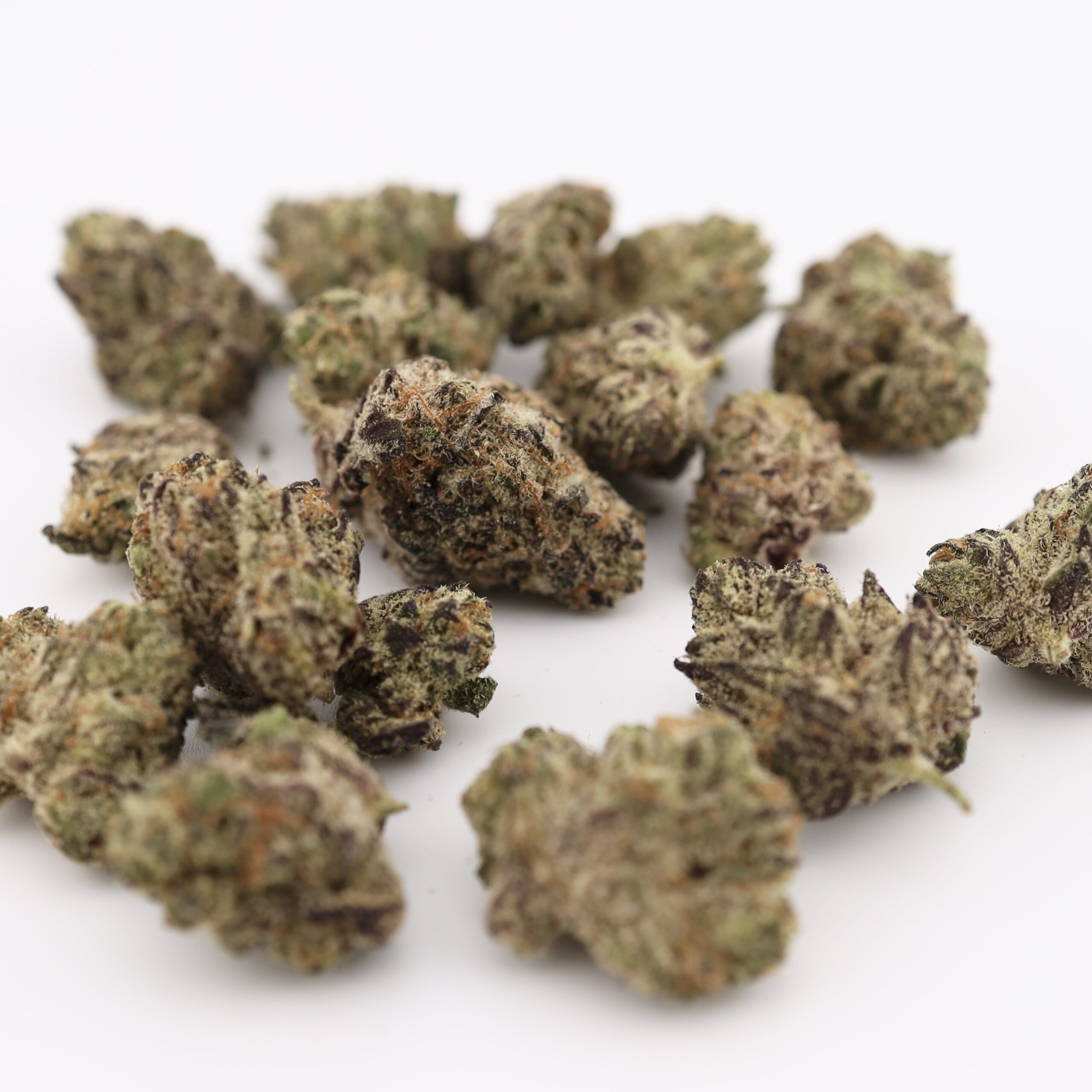 Atomic Blueberry is a rare indica dominant hybrid strain (85% indica/15% sativa) created through crossing the delicious DJ Short Blueberry with the infamous Northern Lights #5 strain. With this bud, you know you’re in for a delicious flavor. Atomic Blueberry has a sweet and spicy herbal blueberry flavor with a very woody exhale. The aroma is spicy and pungent with a rich berry overtone accented by fresh woody pine and sweet earth. The Atomic Blueberry is just as amazing as the flavor, with long-lasting effects that hit both mind and body. You’ll feel a euphoric lift at the onset of the high that fills you with a sense of pure happiness and ease, pushing any stress or anxiety. Soon, this feeling will begin to flow throughout the rest of your body, relaxing you into a physically calm state that can be slightly sedative at times. Thanks to these potent effects and its high 27% + average THC level, Atomic Blueberry is often chosen to treat patients suffering from conditions such as depression, insomnia, chronic pain, nausea, and chronic stress. This bud has fluffy tapered spade-shaped minty green nugs with long thin amber hairs and a thick frosty blanket of bright white crystal trichomes.