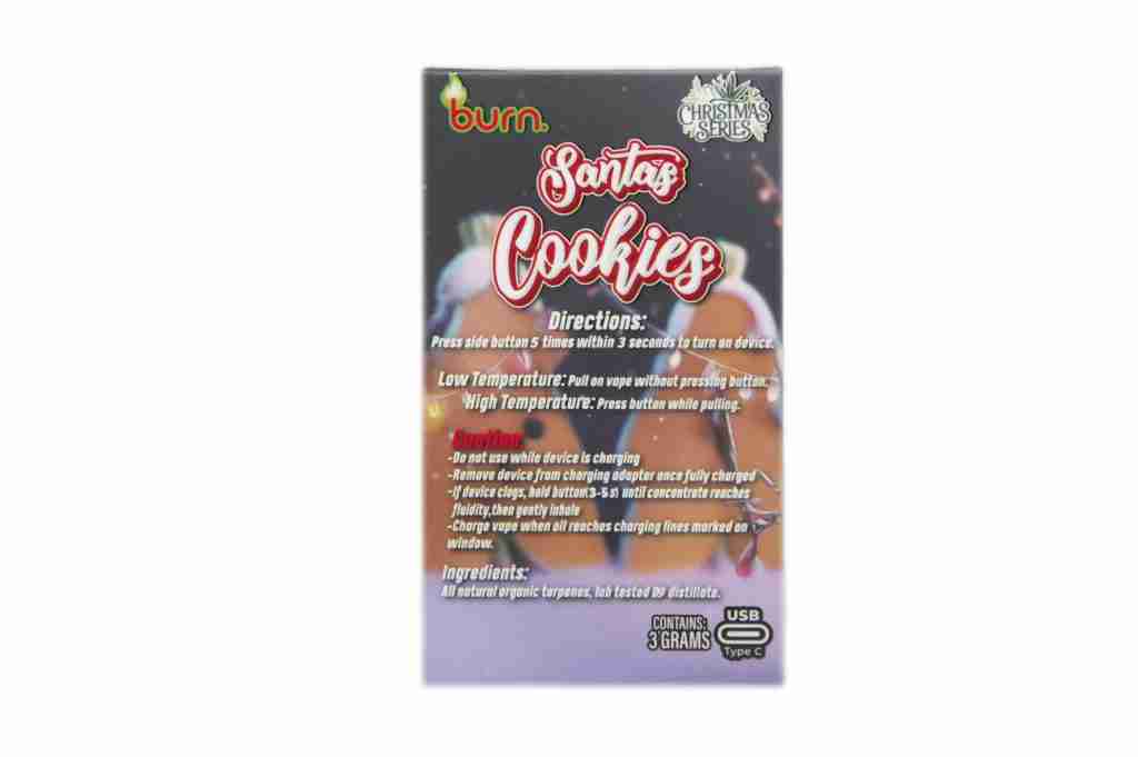 Burn Disposable Vapes – Santa’s Cookies (Hybrid) (3 Gram)