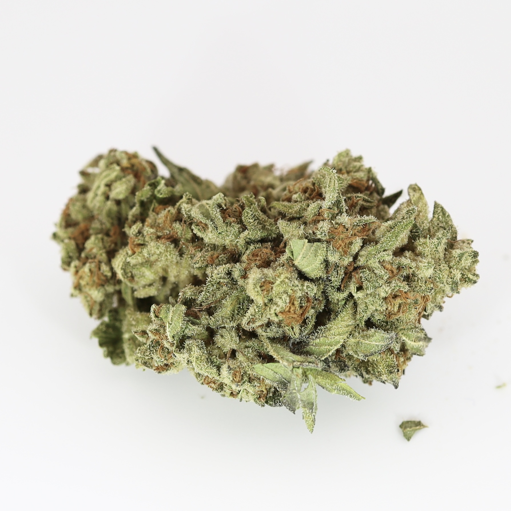 The name “Green Goblin” can refer to two similar strains: either Green Goblin or a phenotype of that plant. In either case, it’s a sativa-dominant hybrid with a 65:35 sativa/indica ratio. This strain was created by crossing two popular strains, Northern Lights and Skunk #1. THC levels can be very high, upwards of 28%, and that means a potent head high with a powerful burst of energy. There isn’t much CBD in this strain, though, much less than 1%. The high is happy and dreamy, with sharp focus, creativity, and a case of the giggles. Use Green Goblin to treat anxiety, stress, depression, mood disorders, pain, and, for some patients, insomnia. Expect dry mouth and possibly dry eyes, while dizziness and paranoia are less likely. The flavor is earthy and sweet, while the aroma is pungent and loamy. As the name suggests, the dense nugs are lime green with small flecks of brown. Like Green Crack, Green Goblin is found mostly on the West Coast, especially in California and neighboring Oregon, as well as on the legal medical market in Arizona.