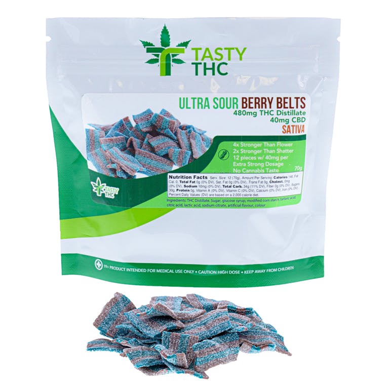 Gummies Ultra Sour Blackberry Belts (480mg THC/40mg CBD)