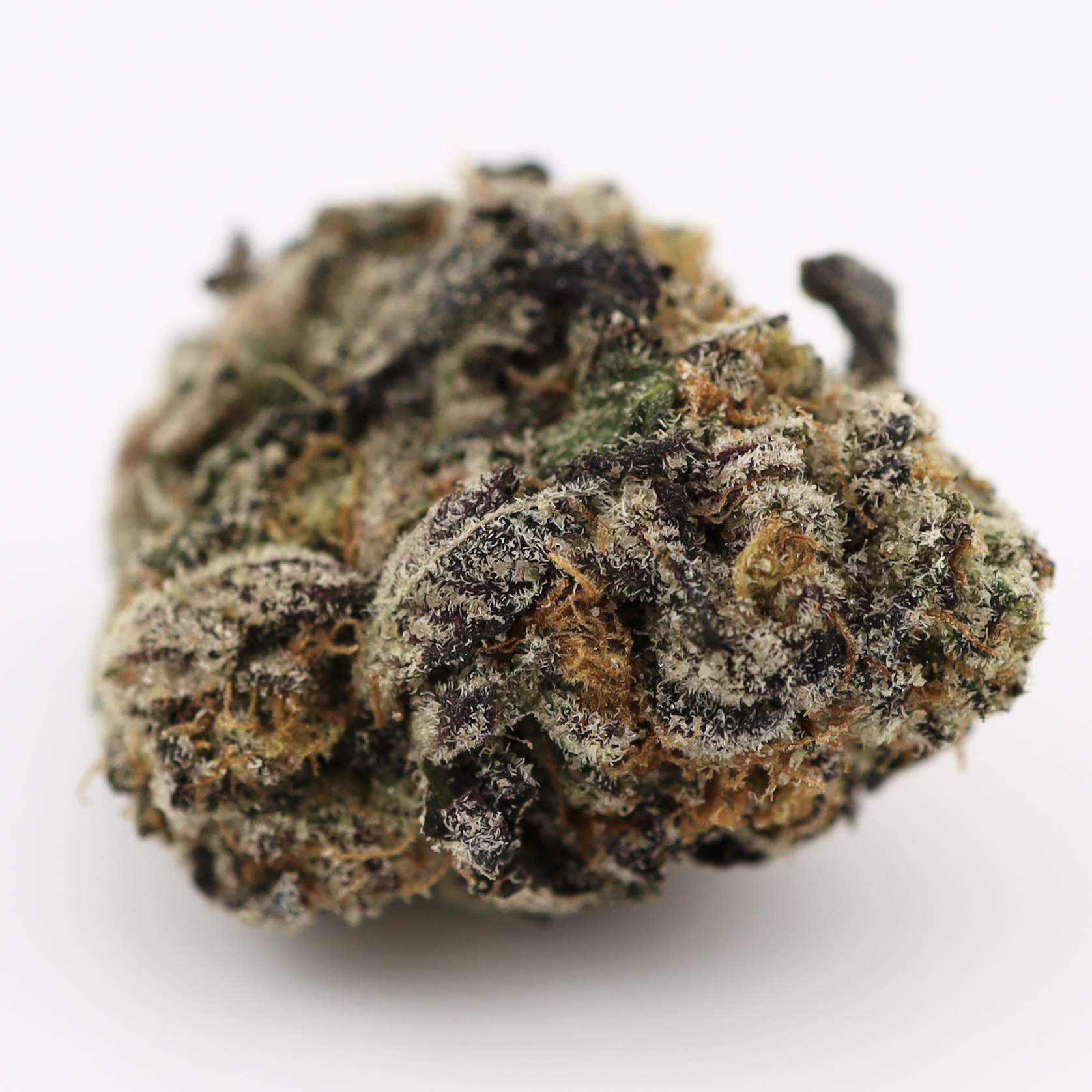 Masterpiece is an evenly balanced hybrid strain (50% indica/50% sativa) created through crossing the tasty Cap Junky X Platinum strains. Once you give this bud a try, you’ll understand where she gets her name. Between her amazing parentage, gorgeous appearance and soaring effects, this bud is truly a masterpiece. Masterpiece buds have long and super dense, pepper-shaped emerald-green nugs with bright purple leaves, thick orange hairs and a super frosty coating of chunky, golden-amber crystal trichomes. As you break apart each sparkling little nugget, you’ll experience delightfully pungent aromas of skunky diesel, dank berries and woody pine dancing through the air. The flavor isn’t quite as heavy, with a notably sweet blueberry taste accented by skunky dank. The Masterpiece high has a heavy-hitting, immediate onset that smashes into the body with a super potent stone. As you become locked down to the couch and totally immovable, you’ll find that your mind is slowly freed from any negative thoughts or moods, leaving you in a place of happy, heady bliss. With these effects and its insanely high 30-38% average THC level, Masterpiece is often suggested to treat only experienced patients with conditions including chronic pain, chronic stress or anxiety, depression or mood swings and cramps or muscle spasms.