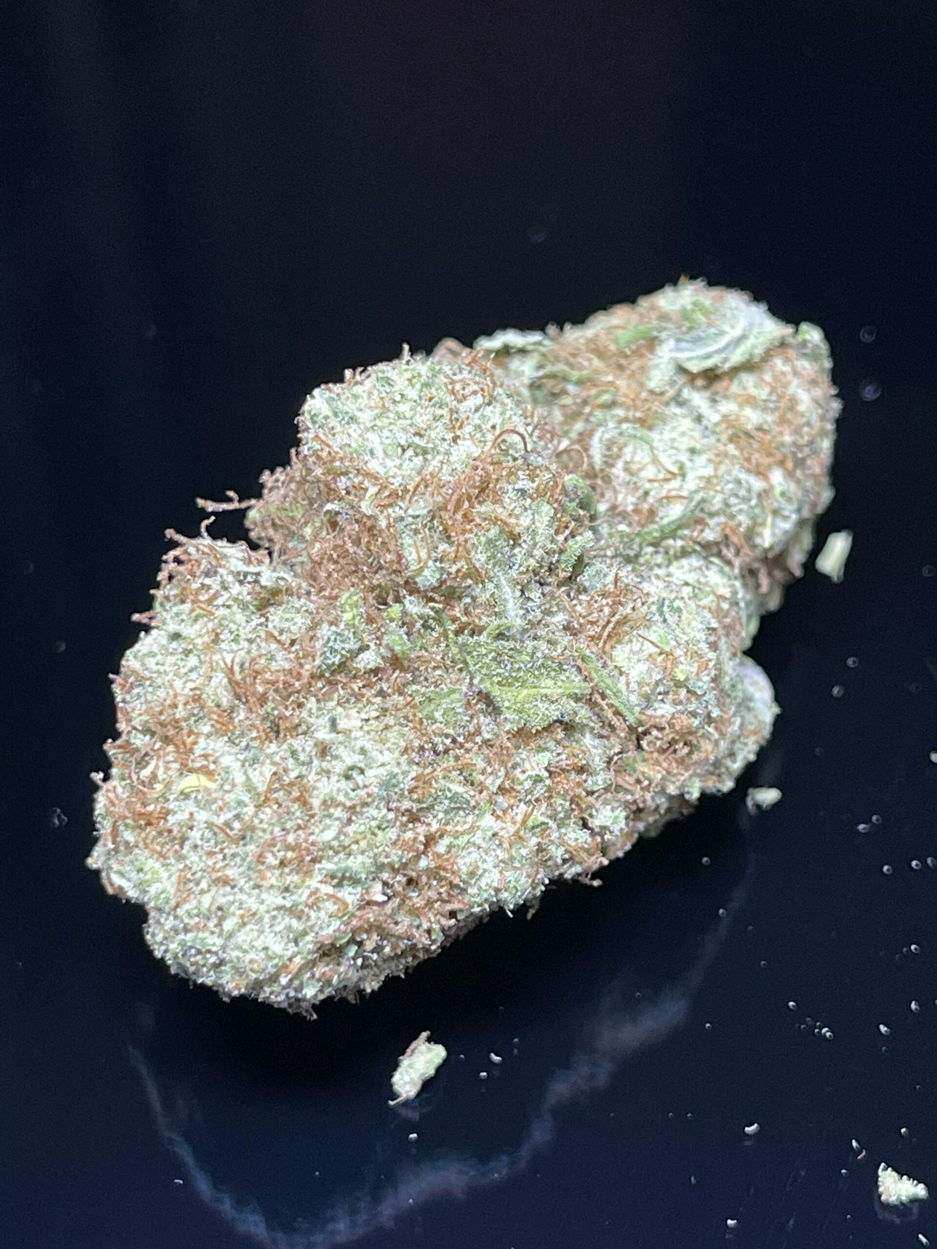 Koffee Cake is a rare indica dominant hybrid strain created through crossing the classic Koffee X Fire Alien Kushstrains. Come on over and grab a slice of this delicious Koffee Cake! This gorgeous gal packs a super sweet and spicy coffee flavor into each and every toke, almost like your favorite anytime treat. The smell is a little more on the pungent side, with a touch of earthiness to it that adds richness and depth. The Koffee Cake high definitely isn’t one that will wake you up, with effects that are deeply relaxing and best suited for nighttime. You’ll feel deeply relaxed throughout the duration of this high, with a calming physical stimulation that will leave you couch-locked and slightly aroused. This quickly turns sedative, leaving you drifting away into a deep and peaceful sleep full of hazy, happy visions. With these effects and its high 15-23% average THC level and potent 3% CBD level, Koffee Cake is the perfect medicinal strain to treat anyone suffering from insomnia, chronic pain, depression, muscle spasms or cramps, and chronic stress or anxiety. Koffee Cake bud have oversized dense olive green nugs with rich purple undertones, dark orange hairs, and a coating of frosty thick amber crystal trichomes.