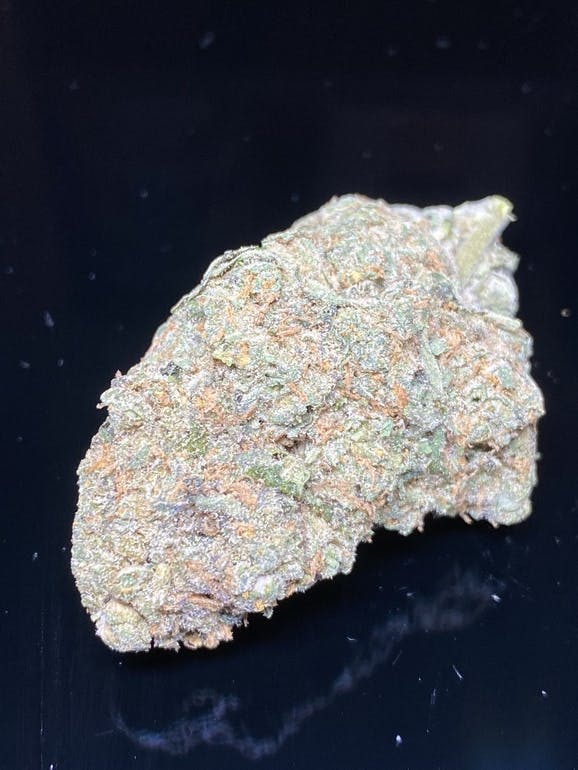 Cherry Cake is a sativa dominant hybrid strain (80% sativa/20% indica) created through crossing the infamous NorCal Goo X Cherry Thunder Fuck strains. Although there are many strains out there with this name, this variety is the most common and most highly sought after. Named for its super delicious flavor, Cherry Cake brings on a sweet fruity cherry flavor with hints of cake and cookies and a touch of spicy pungency upon exhale. The aroma is very similar, with a nutty cookie overtone that’s accented by spicy cherries, pungent skunk and hints of sweet earth. The Cherry Cake high is just as delightful as its taste, with long-lasting effects that will have you feeling lifted and energized, ready to take on your day. It starts with heady effects, working its way into your mind fairly quickly with a sense of mental energy, filling you with a euphoria that is lightly tingly and super creative. As your mind flies higher and higher, a sense of calm will wash over your physical form, keeping you anchored without causing any sedation whatsoever. In combination with its high 20-28% average THC level, these effects make Cherry Cake perfect for treating chronic stress or PTSD, depression, chronic fatigue and anxiety. This bud has oversized heavy rounded forest green nugs with long thin dark amber hairs and a coating of milky white crystal trichomes.