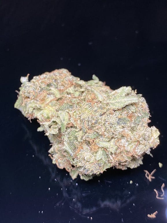 Indica Dominant Hybrid -55% Indica / 45% Sativa THC: 27%   Platinum Dogwalker is a rare slightly indica dominant hybrid strain (55% indica/45% sativa) created through crossing the classic Albert Walker OG X Chemdawg 91 strains. If you’re looking for a potent high, you’ve found it. Platinum Dogwalker packs insanely heavy effects that slam into both head and body thanks to its super high 26-31% average THC level. The high starts with a rushing cerebral effect that first launches you into a state of pure euphoria before pulling you back into a happy calm. As your mind settles, you’ll feel an influx of creativity and a case of the giggles take hold, leaving you laughing at anything that happens to cross your mind. With these effects and its high potency, Platinum Dogwalker is often chosen to treat conditions such as migraines or headaches, eye pressure, insomnia, appetite loss, or chornic stress. This bud has a super heavy stench with a mix of funky fuel, spicy diesel, and pungent skunky earth. The flavor is a little more bearable, with rich grapefruit and spicy earth blending together with fuel and gas. Platinum Dogwalker buds have minty green spade-shaped nugs with light amber hairs, and a super thick frosty coating of tiny bright white crystal trichomes.