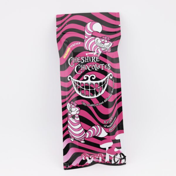 Cheshire Chocolates is a mushroom-infused edible available in four flavor options: Milk Chocolate, Chocolate Almond, Chocolate Reese, and Cookie and Creamer. Each bar contains 8000mg of mushrooms.