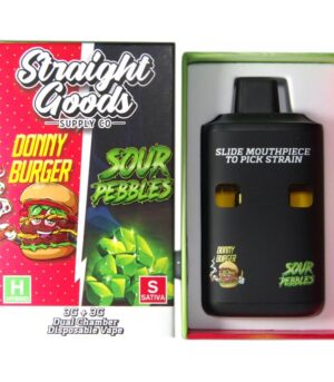 $100.00 – $190.00Price range: $100.00 through $190.00Straight Goods Dual Chamber Vape – Donny Burger + Sour Pebbles (3 Grams + 3 Grams)